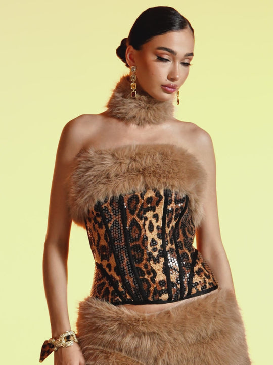 Dualyte Leopard Fur Sequin Skirt Set