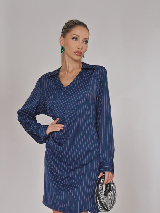 Dunite Folded Collar Stripe Mini Shirt Dress