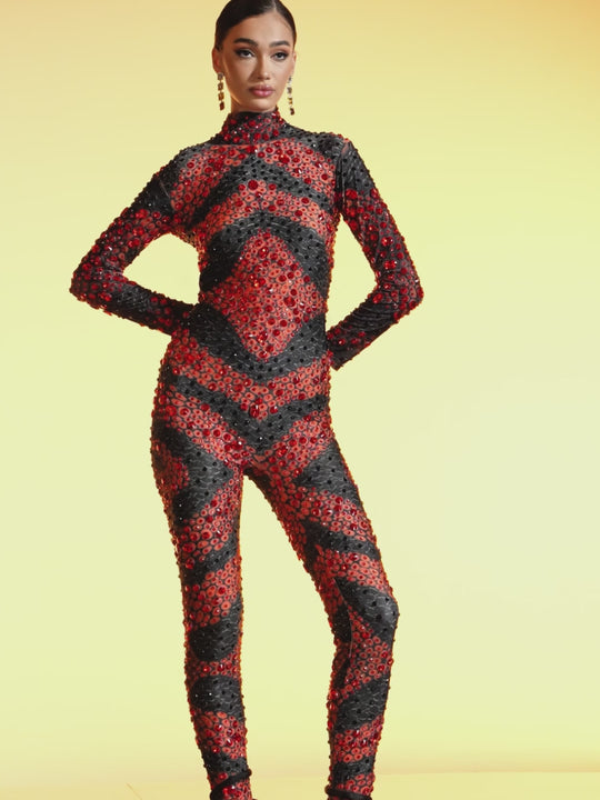 Dynamene High Neck Crystal Snake Jumpsuit