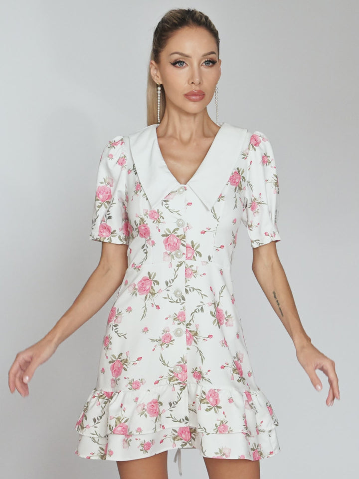 Embrace delicate charm with the Dyvalen V Neck Lace Up Floral Dress in White. Featuring a flattering V-neckline and intricate lace-up detail, this dress highlights your feminine elegance. The soft floral pattern adds a fresh, romantic touch, making it perfect for garden parties, brunches, or special gatherings. Its lightweight fabric ensures comfort while the design accentuates your natural beauty with effortless grace.