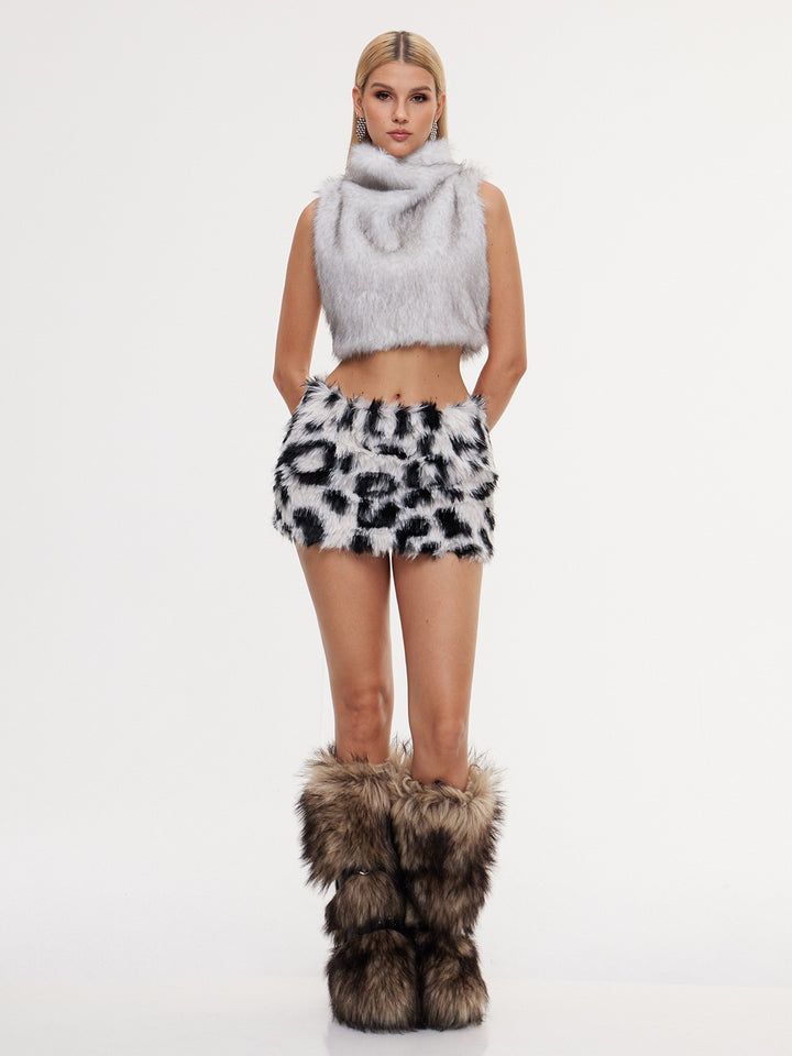 Eccentra Animal Printed Faux Fur Skirt