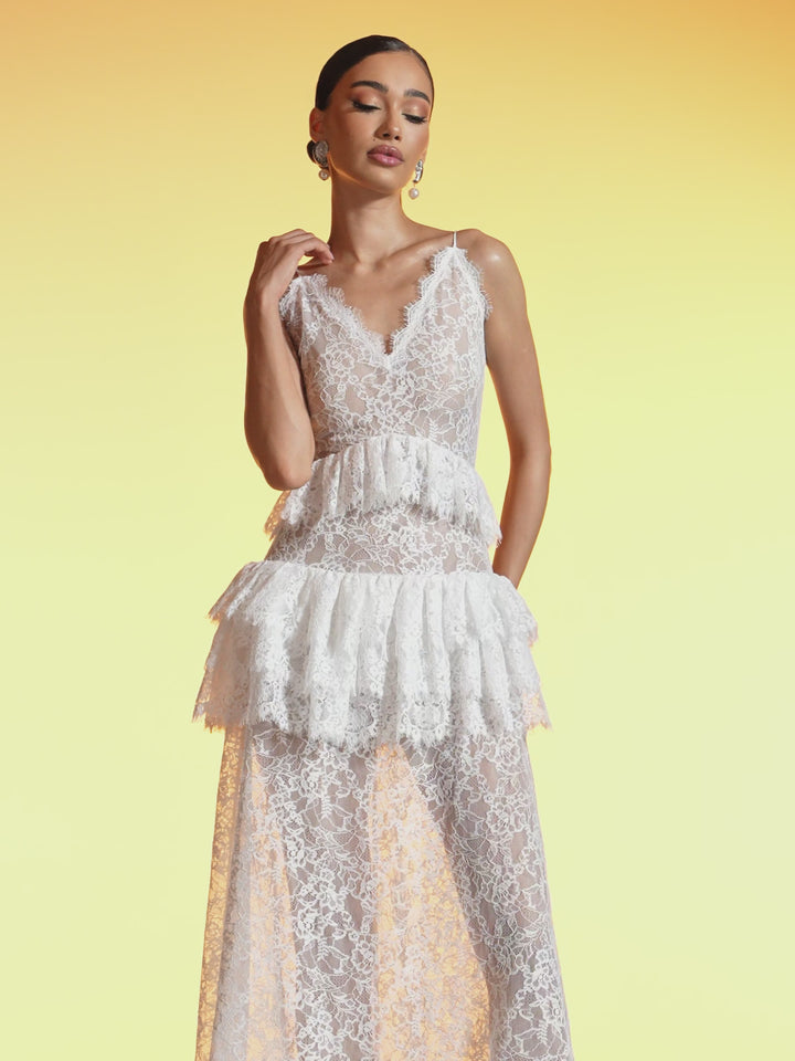 Elevate your wardrobe with the Emanea Spaghetti Lace Floral Maxi Dress, where delicate femininity meets timeless elegance. This stunning piece features intricate lace detailing adorned with romantic floral patterns, creating an enchanting silhouette that flatters every figure. The graceful spaghetti straps and flowing maxi length offer effortless sophistication for special occasions, garden parties, or upscale evening events. Crafted with quality construction, this dress transitions seamlessly from day to night, making it an essential investment for any discerning wardrobe. Turn heads and feel absolutely radiant in this captivating design.