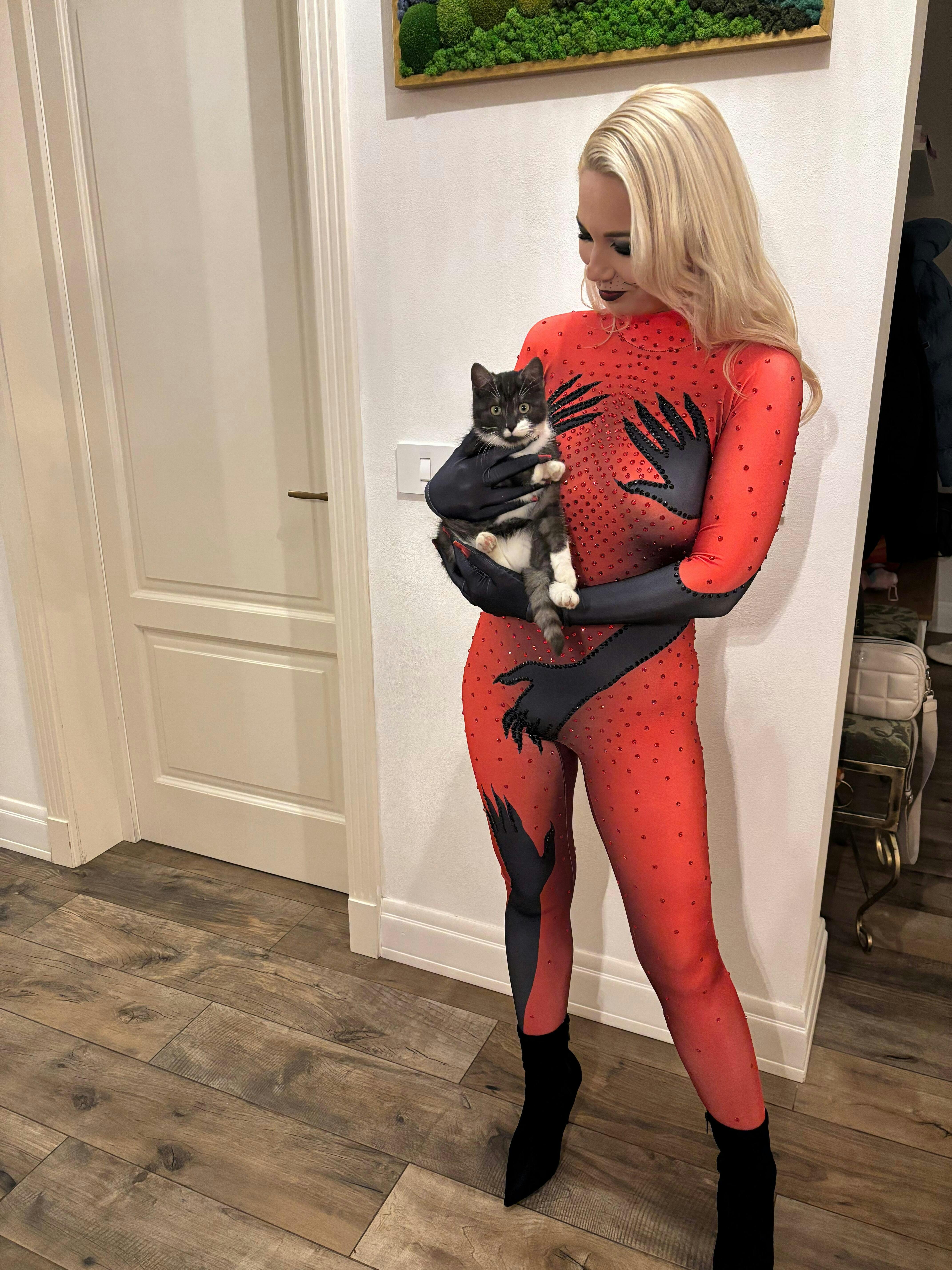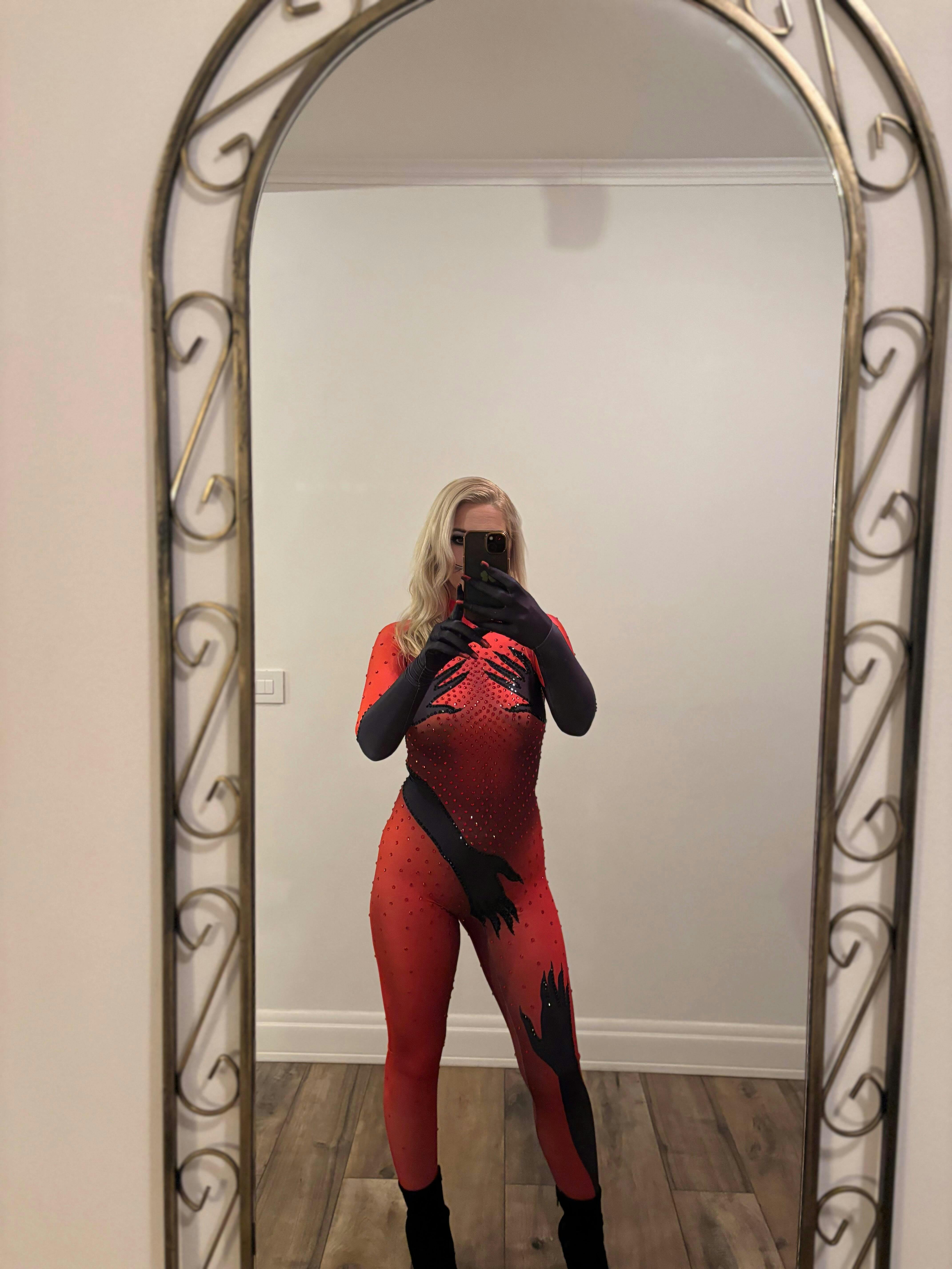 Introducing the Esau Hands Printed Rhinestone Gloves Jumpsuit In Red. This sleek and stylish jumpsuit features a unique Esau Hands print and sparkling rhinestone gloves, perfect for making a statement at any event. Made with high-quality materials for a comfortable and luxurious fit.