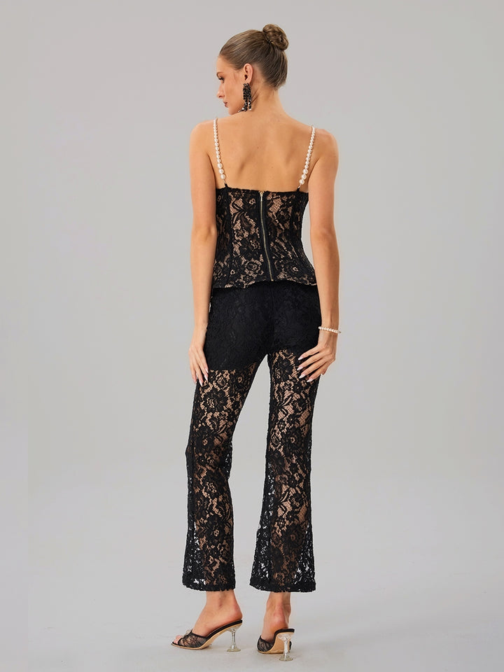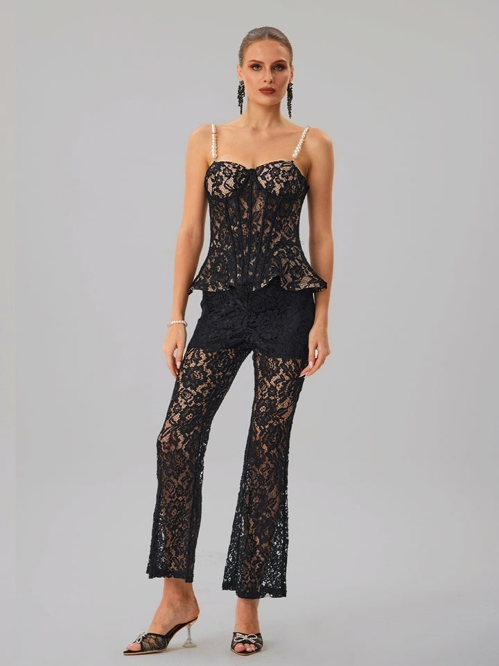 Elevate your evening look with the Farrah Spaghetti Lace Corset Pants Set—a sophisticated two-piece that combines timeless elegance with modern edge. The delicate lace corset features thin spaghetti straps and a sculpted silhouette that flatters your figure, while the coordinating pants offer a sleek, polished finish. Perfect for date nights, upscale events, or whenever you want to feel confident and stunning. This versatile set transitions seamlessly from cocktail hour to dancing, making it an essential addition to your wardrobe.