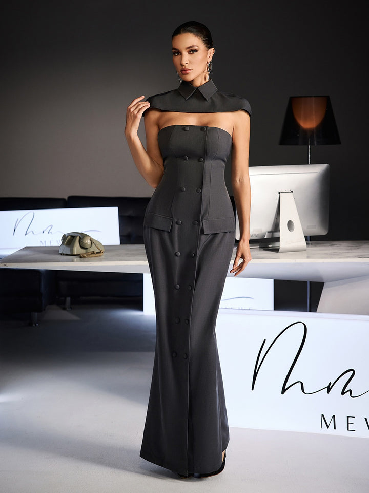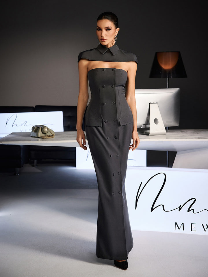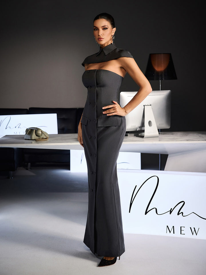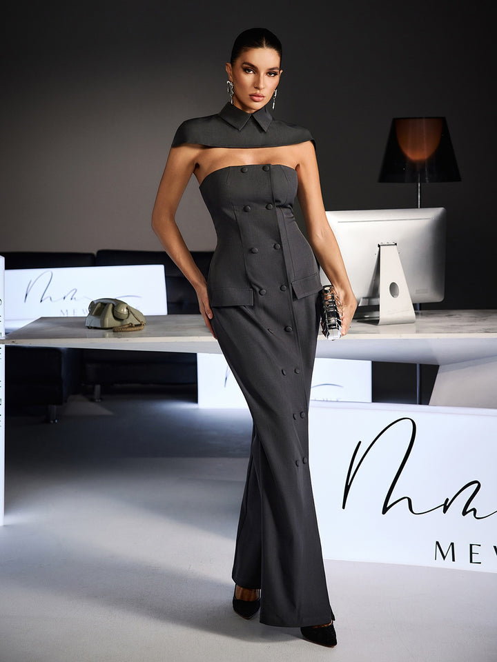 Make a bold statement with the Fido Strapless Double Breasted Dress Set, a striking two-piece ensemble that combines classic tailoring with contemporary allure. The elegant strapless silhouette showcases your shoulders while the double-breasted front adds structured sophistication and visual impact. This coordinated set delivers an instantly polished, high-fashion look perfect for cocktail events, formal dinners, or special occasions. The quality construction and attention to detail ensure a flattering fit that moves with you gracefully. The timeless double-breasted design paired with the modern strapless neckline creates a captivating balance between traditional elegance and current style. Perfect for those who appreciate refined fashion and want to feel absolutely stunning. Invest in a set that celebrates your confidence and elevates every moment.