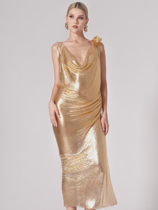 Flagria Cowl Neck Chainmail Split Midi Dress