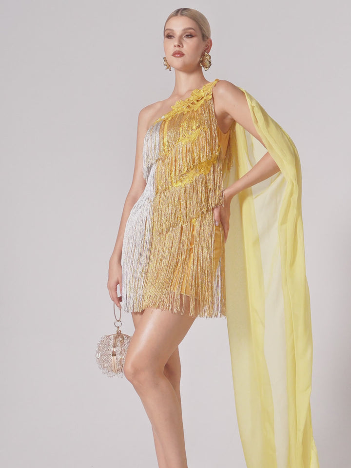 Fusora One Shoulder Fringe Draped Mini Dress