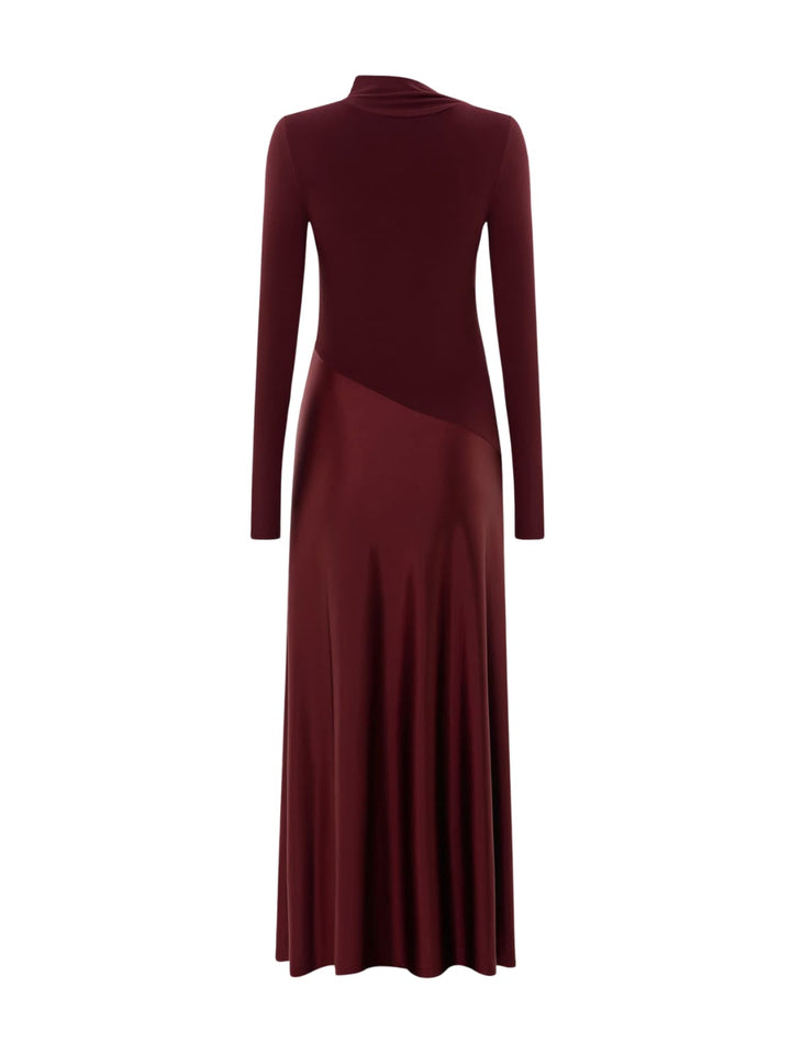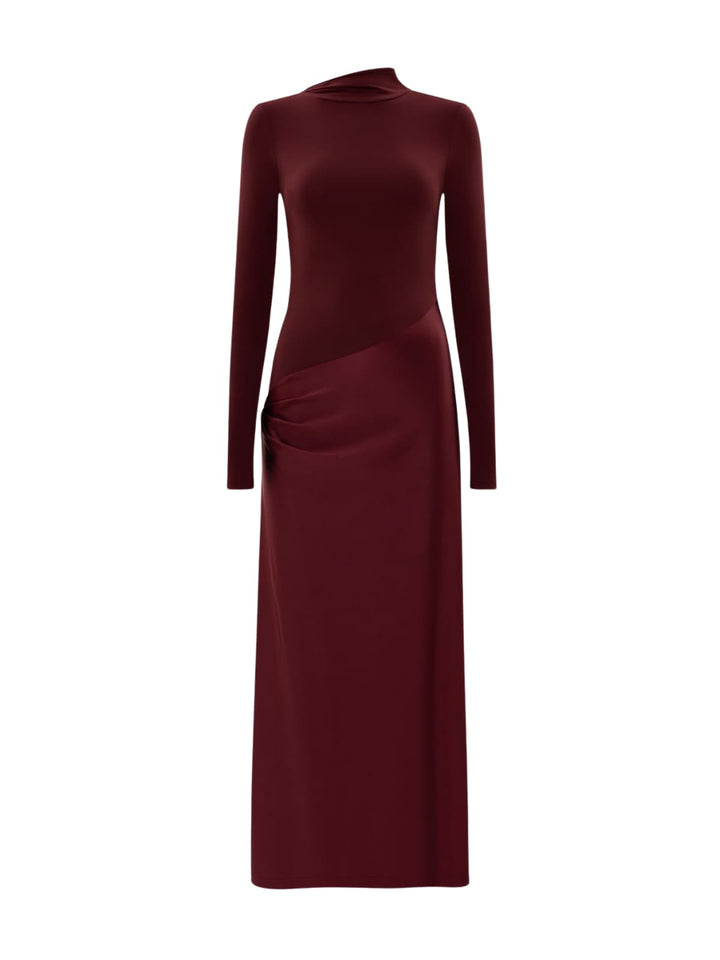 Hertzia Long Sleeve Satin Maxi Dress In Wine