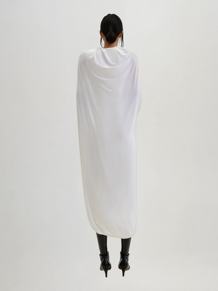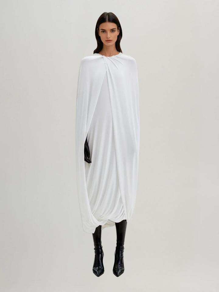 Elevate your wardrobe with the Hydronia Cape Midi Dress, a sophisticated piece that seamlessly blends elegance with modern style. The dramatic cape detail adds movement and dimension, creating a striking silhouette that commands attention. Cut to a flattering midi length, this dress transitions effortlessly from daytime events to evening occasions. The flowing fabric drapes beautifully, offering both comfort and a polished appearance. Perfect for those who appreciate timeless design with a contemporary twist, this dress is an investment piece that will become a go-to favorite in your collection.