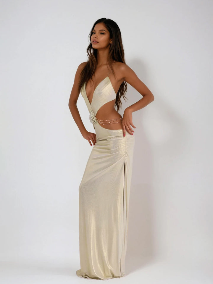 Elevate your evening look with the Hydronix Backless Cutout Chain Maxi Dress—a stunning statement piece that commands attention. This floor-length gown features a daring backless design and intricate chain cutout details that create an alluring silhouette. The flowing maxi length offers elegance and movement, while the strategic cutouts add modern edge and sophistication. Perfect for special occasions, cocktail events, or anywhere you want to make a bold impression. Crafted for the confident woman who isn't afraid to turn heads.