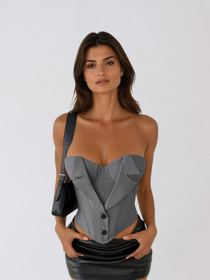 Elevate your wardrobe with the Hyetal Strapless Lace Up Top, a sophisticated piece that effortlessly transitions from day to night. The elegant strapless design offers a flattering silhouette, while the intricate lace-up detailing adds an alluring touch of texture and dimension. Crafted for versatility, this top pairs beautifully with everything from tailored trousers to your favorite denim. Whether you're heading to brunch or a special evening out, this timeless style ensures you'll turn heads while feeling confident and comfortable.