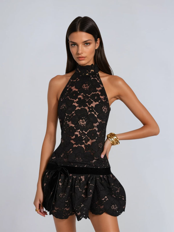 Invisira Backless Lace Ruffle Mini Dress