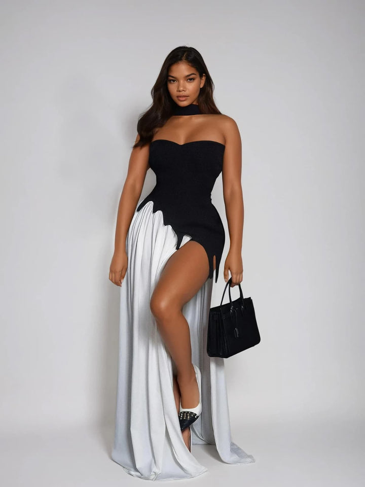 Elevate your wardrobe with the Isolatra Strapless Scarf Split Skirt Set—a sophisticated ensemble that seamlessly blends elegance with modern flair. The strapless design offers a flattering, versatile silhouette perfect for any occasion, while the flowing split skirt adds movement and dimension to your look. The coordinating scarf detail provides endless styling possibilities, allowing you to customize your appearance from day to night. Whether you're dressing up for a special event or creating an effortlessly chic everyday outfit, this set delivers timeless appeal with contemporary edge. Transform your style with a piece that works as hard as you do.