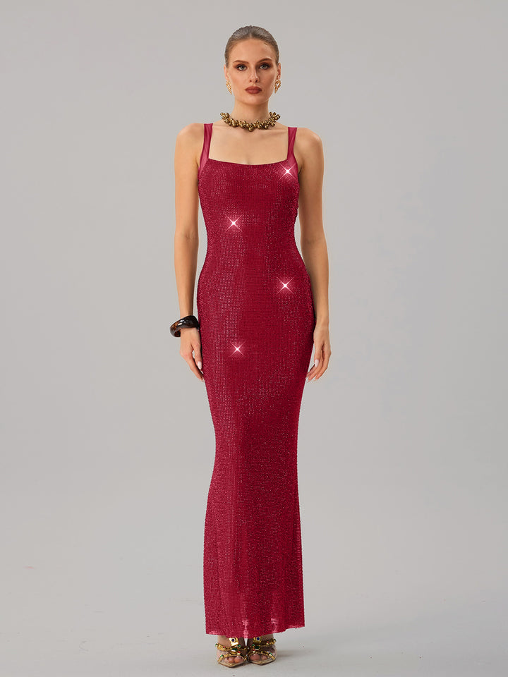Jouncegrid Backless Rhinestone Maxi Dress In Red