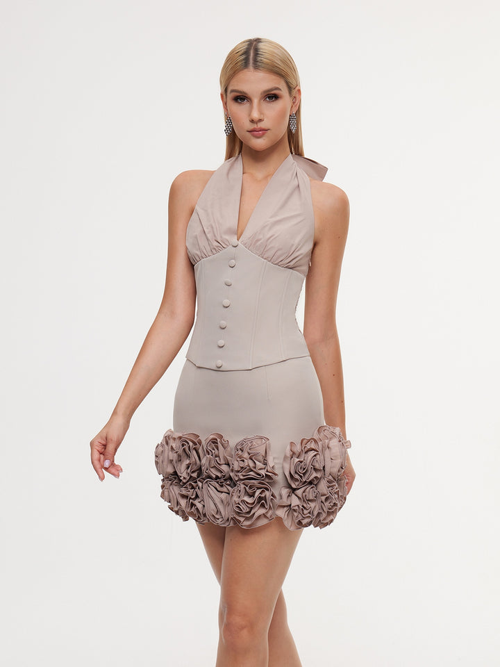 Elevate your summer wardrobe with the Kahili Halterneck Ruched Skirt Set. Featuring a flattering halterneck design and ruched detailing, this two-piece set accentuates your silhouette while offering comfortable wear. Perfect for both casual outings and special occasions, it combines style and ease effortlessly. Make a confident statement wherever you go with this chic coordinated outfit.