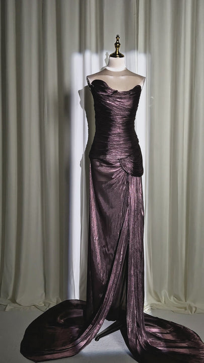 Elevate your evening wardrobe with this sophisticated Kawasakix Strapless Ruched Split Maxi Dress In Mauve Brown, expertly crafted in a luxurious brown hue. The ruched detailing creates flattering dimension across the bodice, while the dramatic side split adds movement and contemporary flair. The strapless neckline offers a refined, elegant silhouette perfect for formal events, galas, or upscale celebrations. Constructed with attention to detail, this dress combines timeless elegance with modern design elements, ensuring you make a striking impression. An ideal choice for those seeking a show-stopping piece that balances glamour with wearable sophistication.