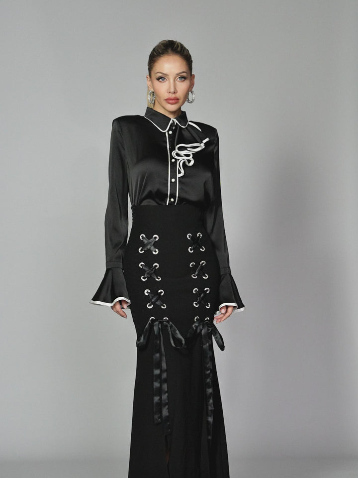 Ludwig Flare Sleeve Lace Up Skirt Set