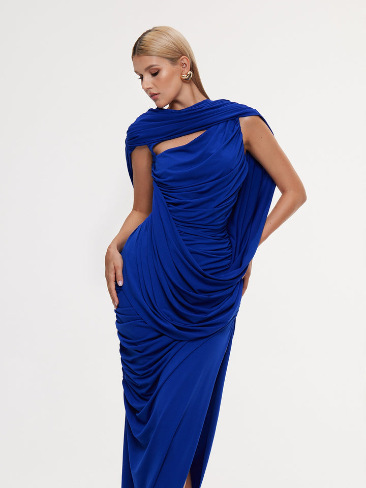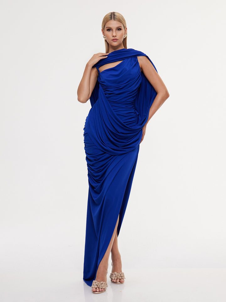 Lyrixon Backless Shawl Ruched Split Maxi Dress