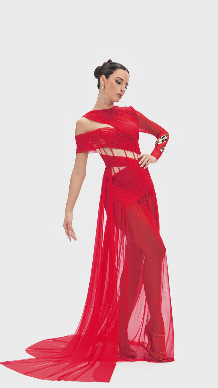 Malati Corset Cutout Mesh Maxi Dress