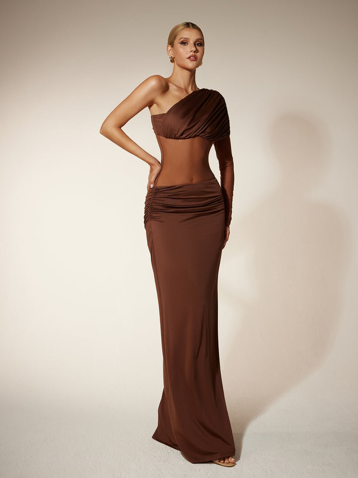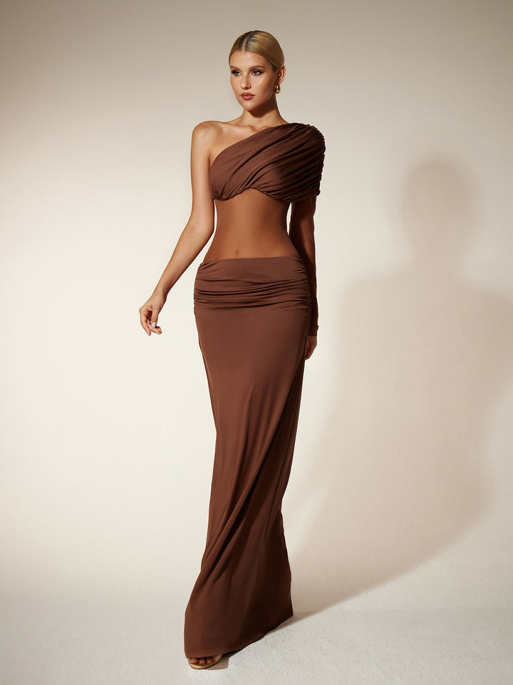 The Myrxel One Shoulder Ruched Maxi Dress offers a stunning silhouette with its elegant one-shoulder design and flattering ruched detailing. Crafted to drape beautifully, this maxi dress enhances your natural shape while providing comfort and style. Perfect for special occasions or evening events, it makes a memorable statement with every wear. Elevate your wardrobe with this sophisticated and versatile piece that effortlessly combines grace with modern charm.
