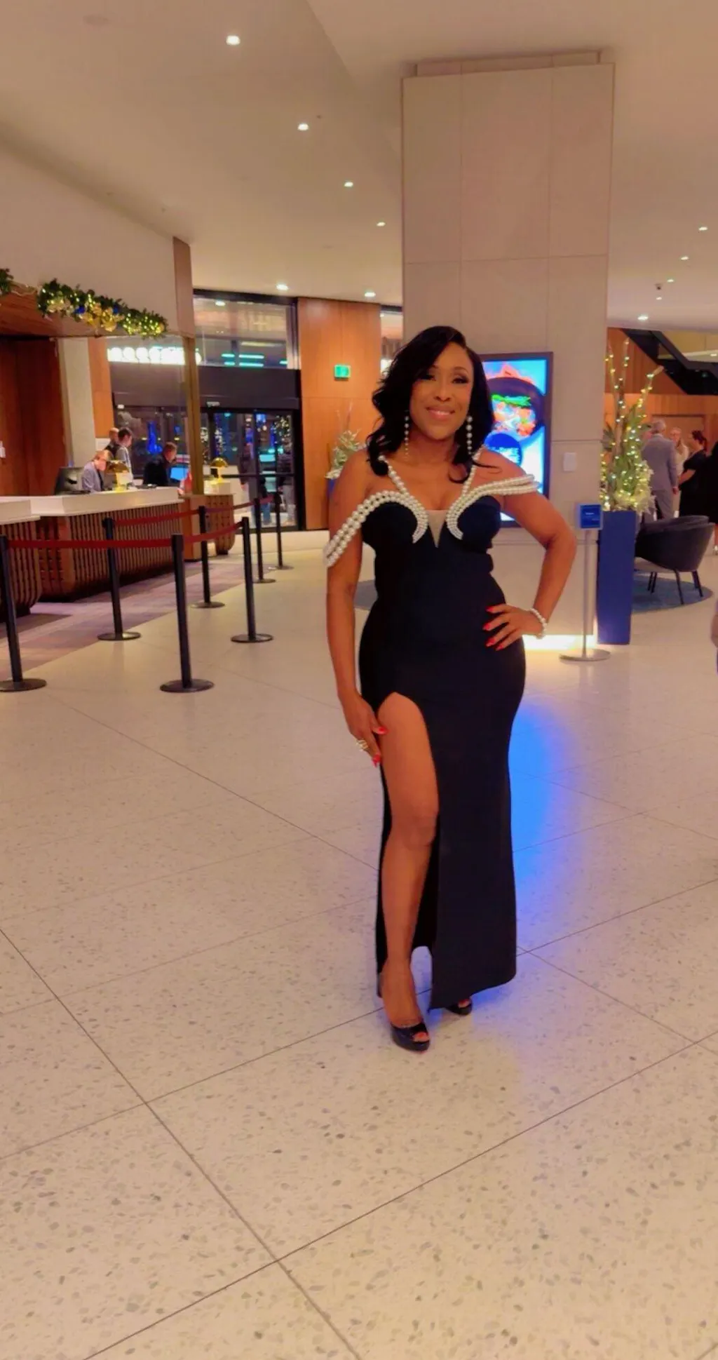 Step into timeless elegance with the Nadim Off Shoulder Pearl Bandage Maxi Dress. This stunning dress features an off-shoulder neckline adorned with delicate pearl accents, adding a touch of sophistication to your look. The bandage design hugs your curves flawlessly, creating a sleek and flattering silhouette. Perfect for special occasions, this maxi dress ensures you stand out with grace and confidence.