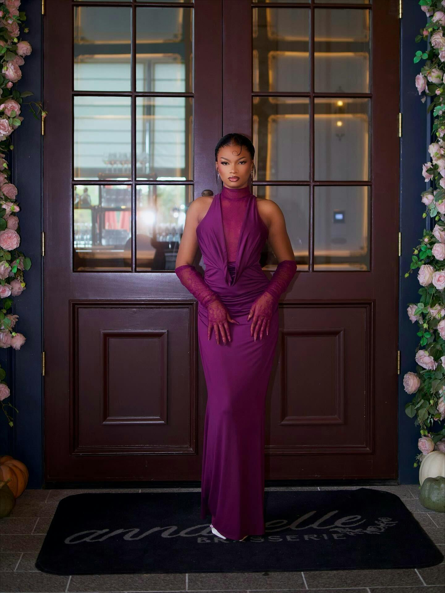 Tenley Halterneck Lace Maxi Dress With Gloves