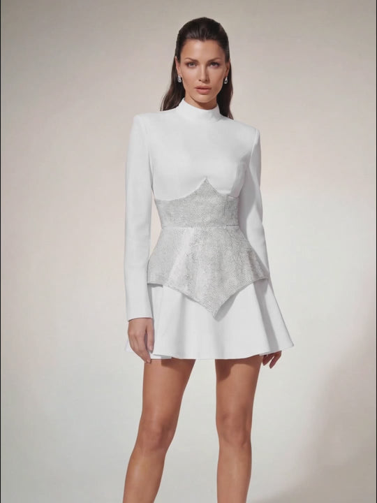 Uqorin Long Sleeve Rhinestone Mini Dress