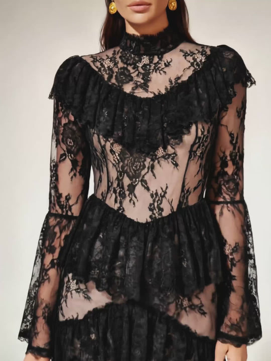 Aloysius Flare Sleeve Lace Ruffle Maxi Dress