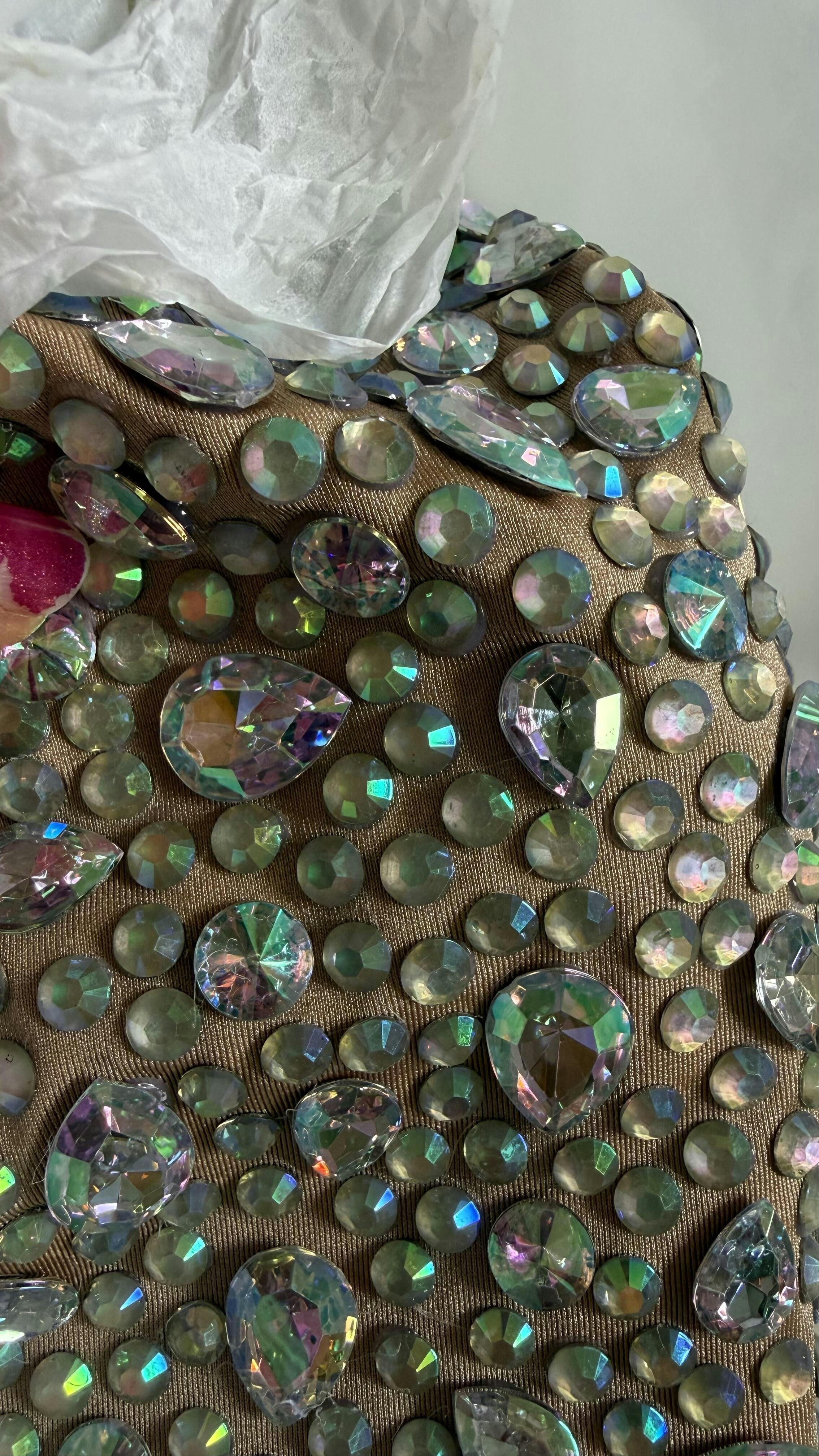 A luminous statement piece, the Azami Mesh Crystal Mini Dress In Silver features a sheer mesh fabric with intricate crystal embellishments and long sleeves. Designed with a flattering mini length, it's an eye-catching option for special occasions.
