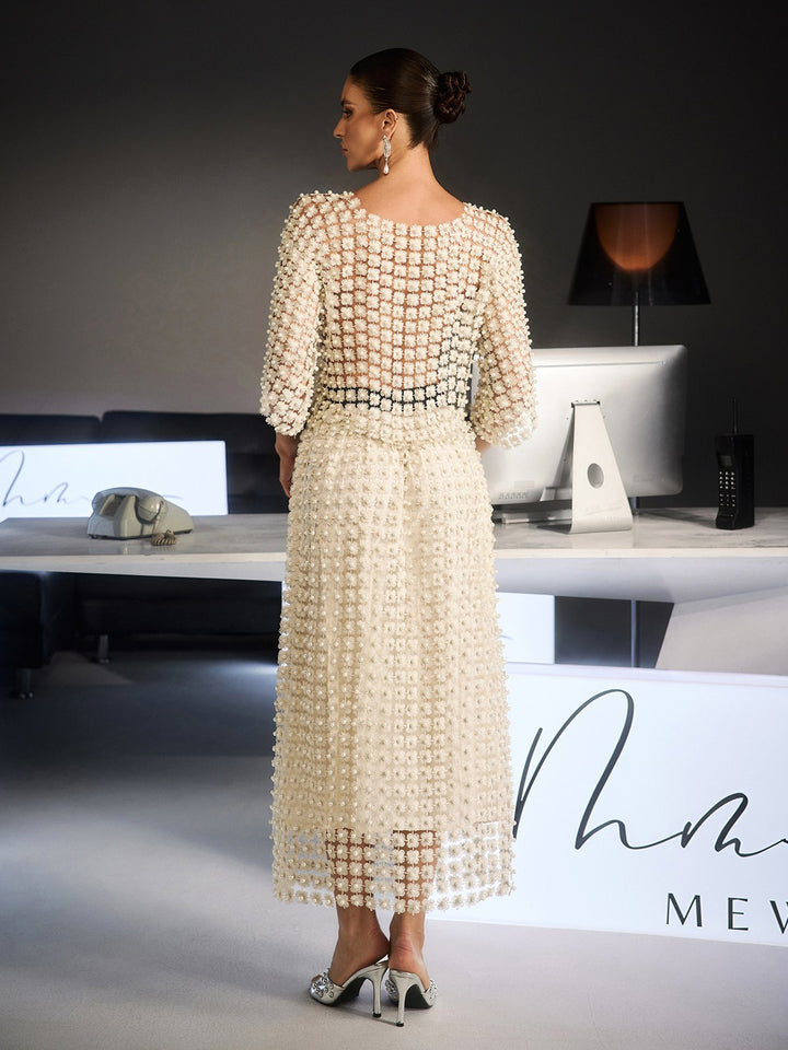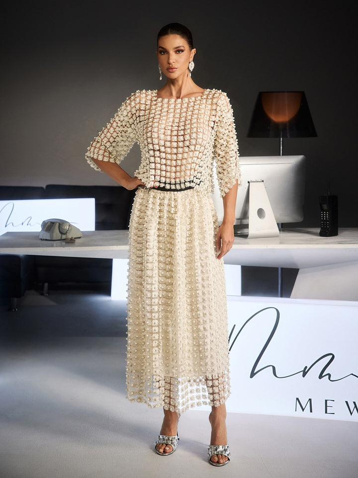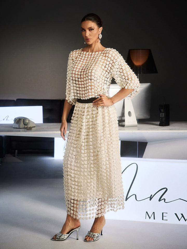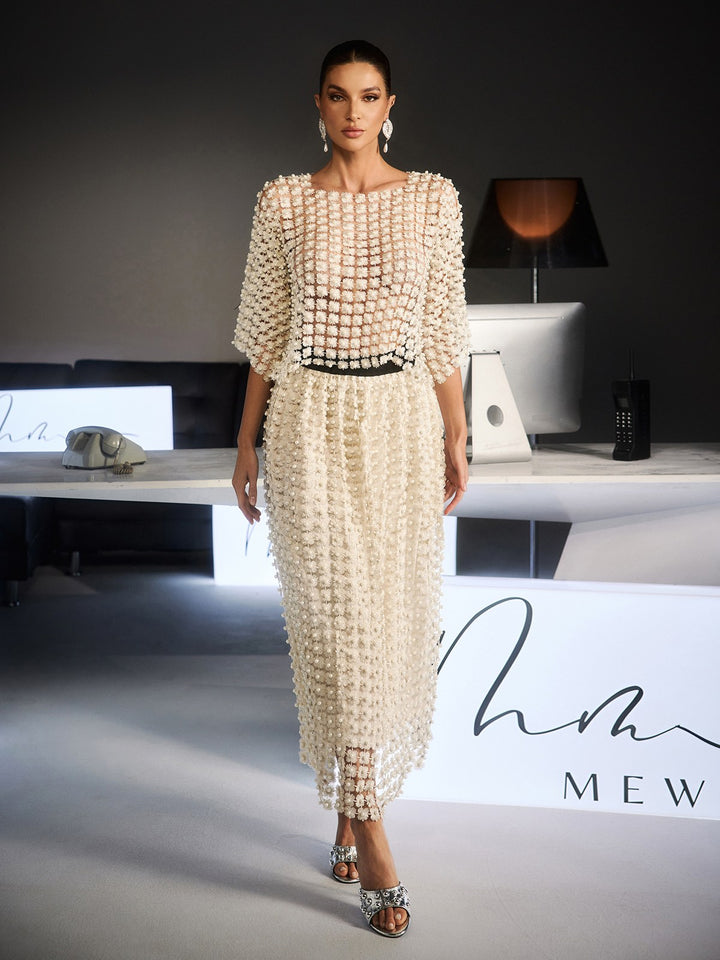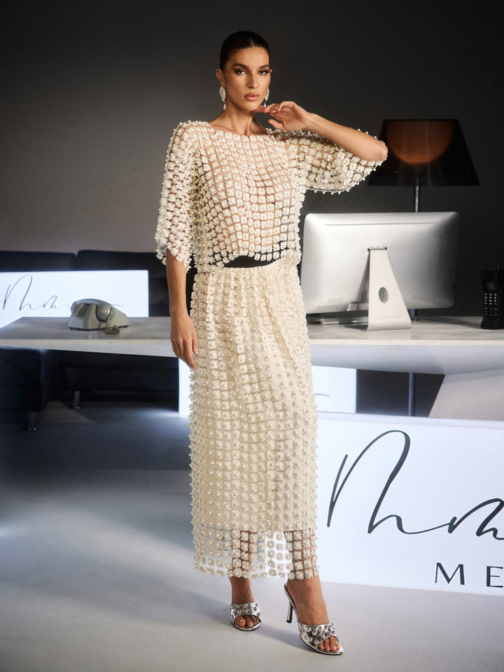 Fiadh Round Neck Pearl Knitted Skirt Set