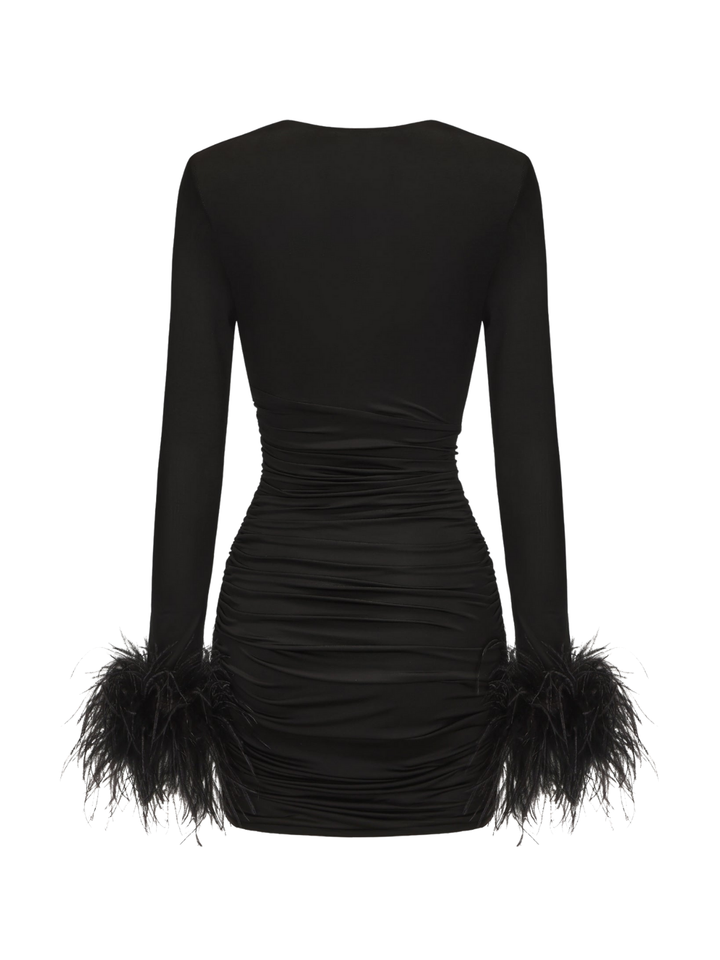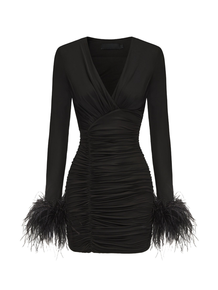 Elevate your evening look with this stunning Mesoscale V Neck Ruched Feather Mini Dress, where sophisticated design meets luxurious texture. The flattering ruched detailing sculpts your silhouette while delicate feather accents add an undeniable touch of glamour and movement. Perfect for cocktail events, nights out, or any occasion where you want to make a memorable impression. The mini length keeps things modern and playful, while the refined V-neckline ensures timeless elegance. Slip into confidence and turn heads in this show-stopping piece that effortlessly transitions from day to night.