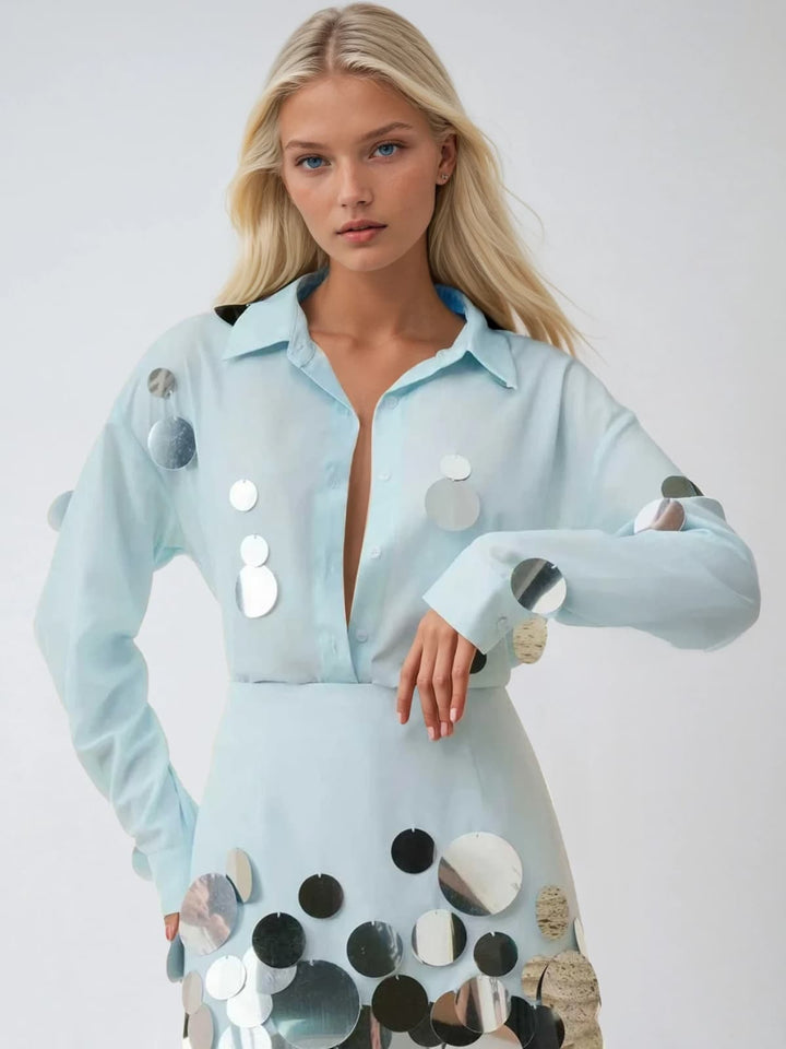 Uthara V Neck Sequin Skirt Set In Baby Blue
