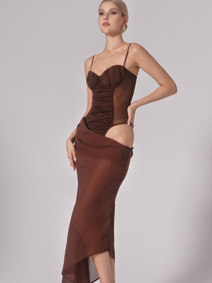 Elevate your style with the Uzzar Spaghetti Mesh Maxi Dress, designed to blend elegance and modern flair. Its delicate spaghetti straps and sheer mesh overlay create a captivating silhouette that moves gracefully with you. Perfect for evening events or special occasions, this maxi dress offers a striking look that ensures you stand out effortlessly. Embrace confidence and sophistication in one stunning piece.