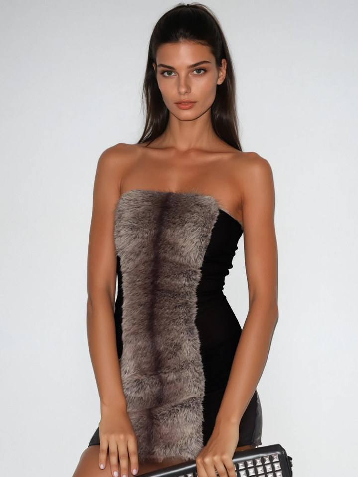 Vazgoth Strapless Furry Mini Dress