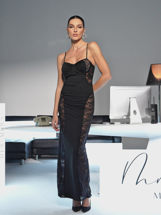Velyxra Spaghetti Lace Maxi Dress In Black