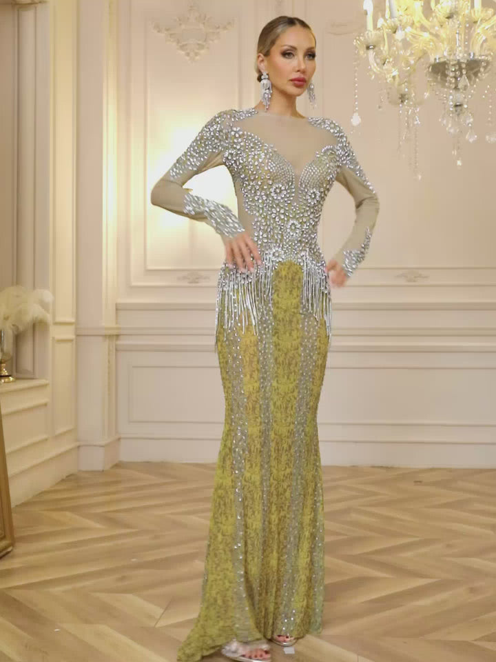 Elevate your evening with the Brynion Fringe Crystal Maxi Dress, designed to captivate with every step. This stunning gown features delicate fringe detailing and shimmering crystal accents that catch the light beautifully, creating a dazzling effect. Its flowing maxi silhouette offers both elegance and comfort, perfect for special occasions where you want to shine. Make a memorable entrance and embrace timeless glamour with this exquisite dress.