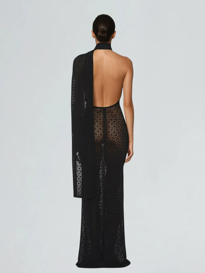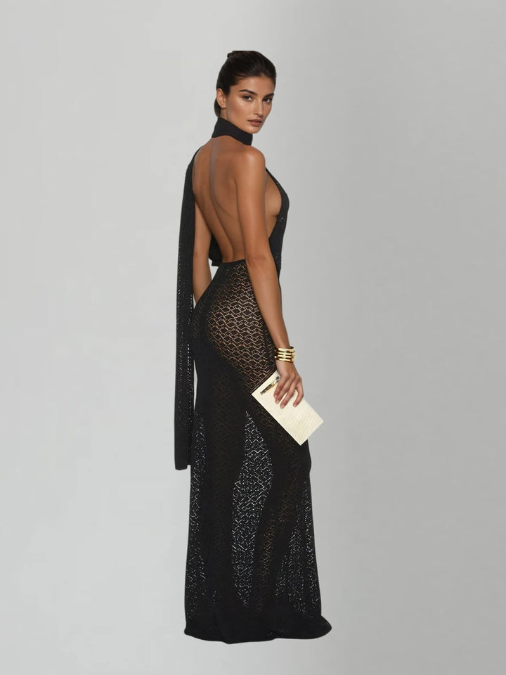 Calore Backless Shawl Cutout Maxi Dress In Black