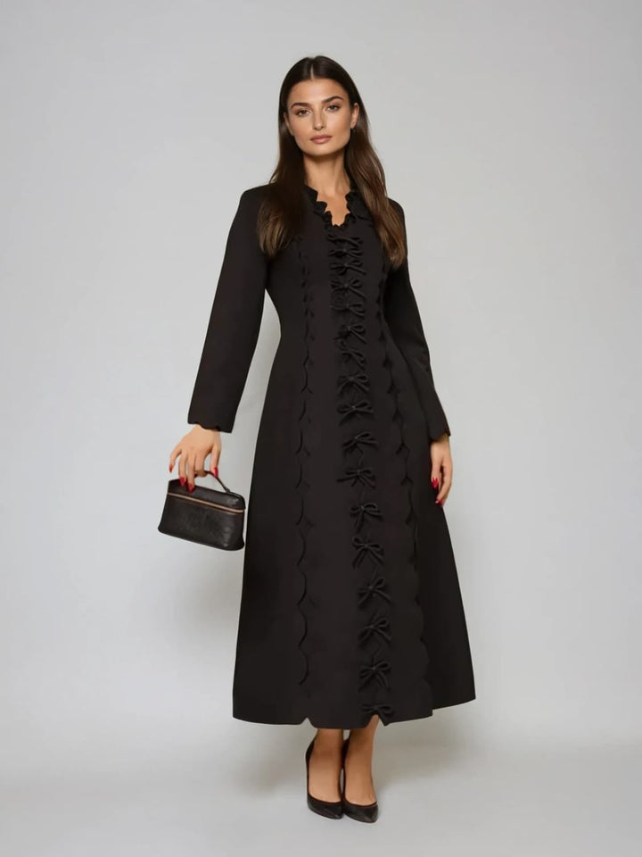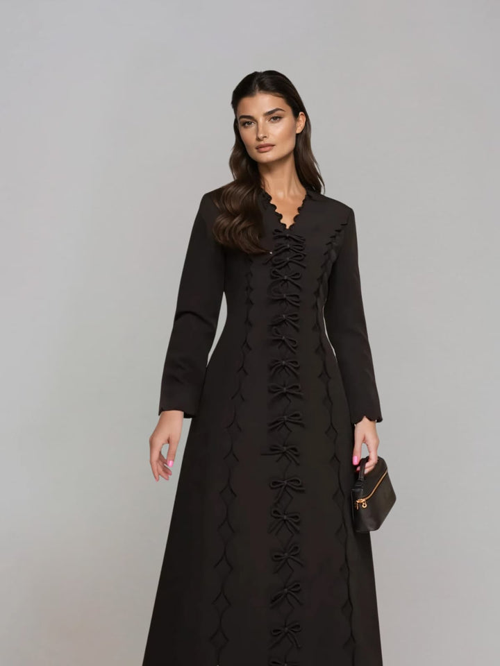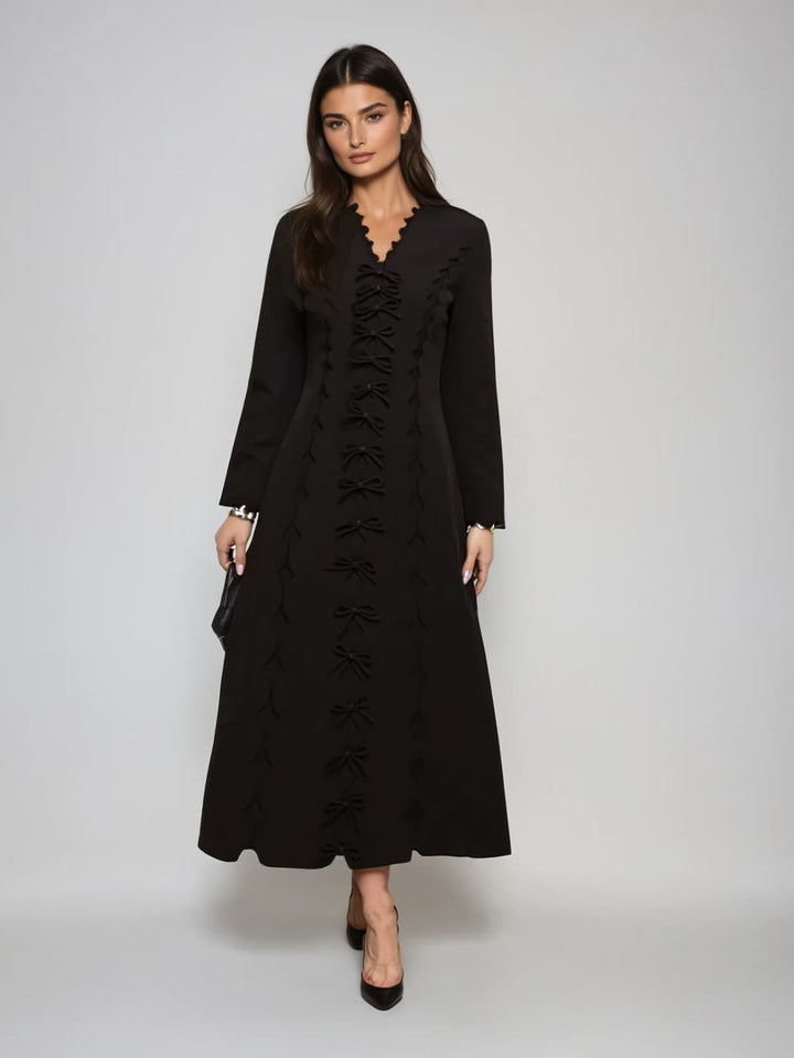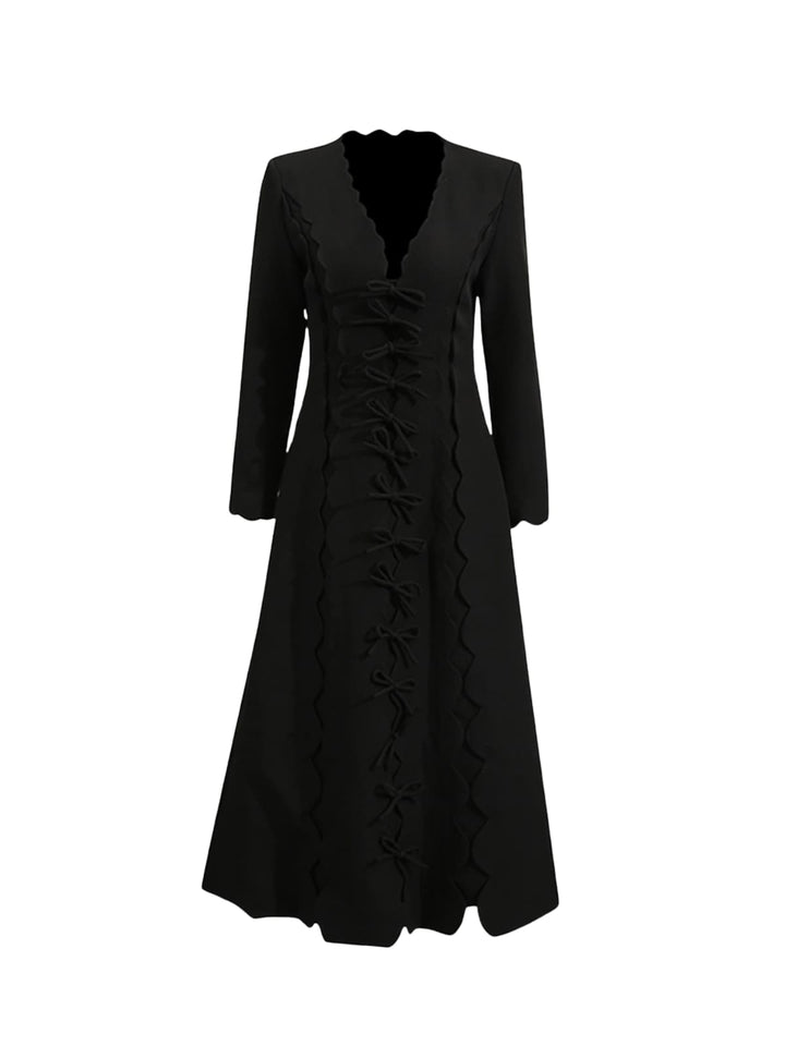 Drusoid V Neck Bow Midi Dress