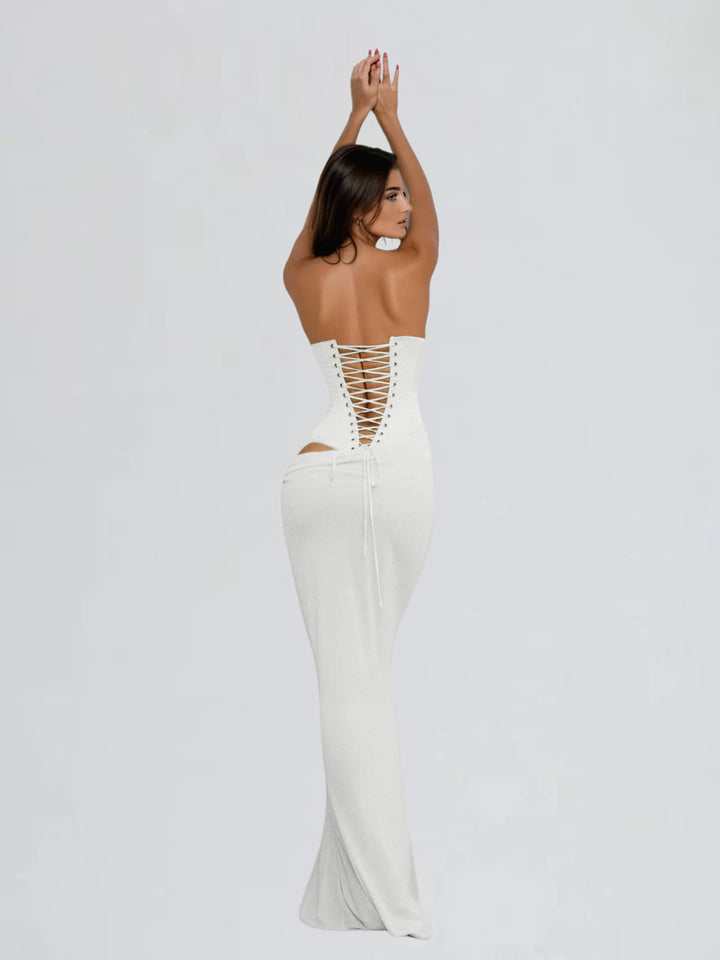 Dyrthia Strapless Lace Up Maxi Dress