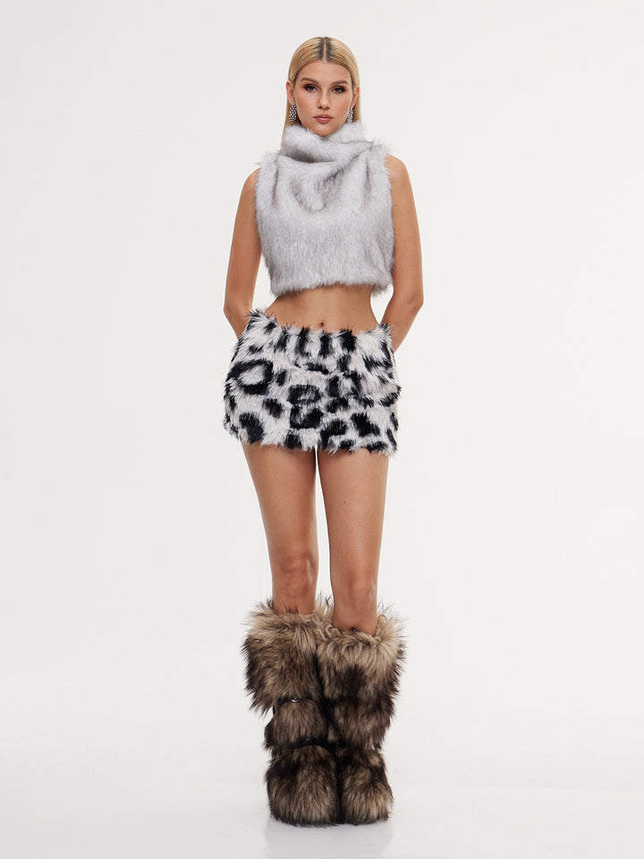 Eccentra Animal Printed Faux Fur Skirt