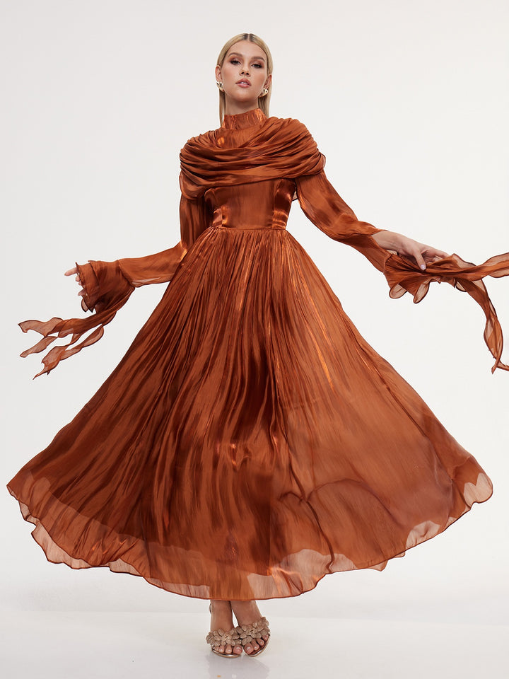Emanara High Neck Shawl Ruffle Maxi Dress