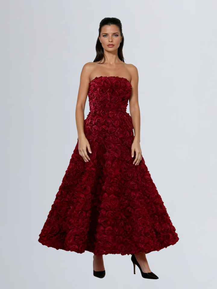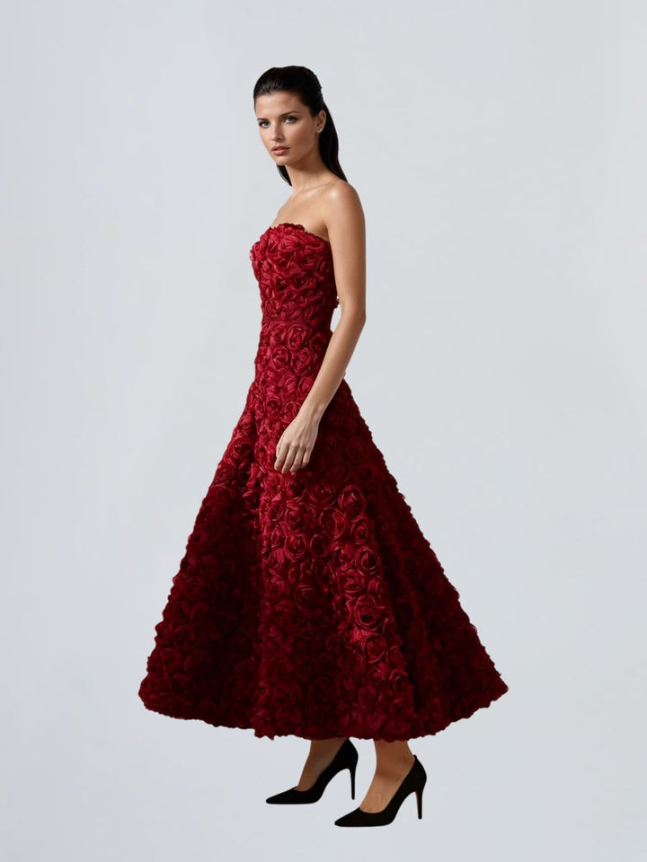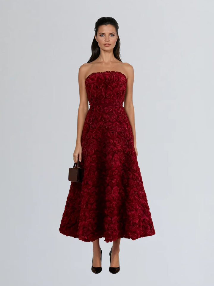 Geodrix Strapless Flower Midi Dress