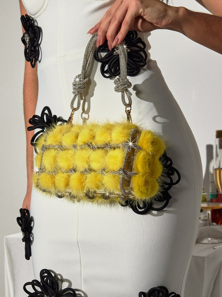 Indulge in pure luxury with our Tristano Faux Fur Crystal Bag! This stunning bag features a plush faux fur exterior and elegant crystal detailing, making it a must-have accessory for any fashion-forward individual. Elevate your style and make a statement with our Tristano Bag!