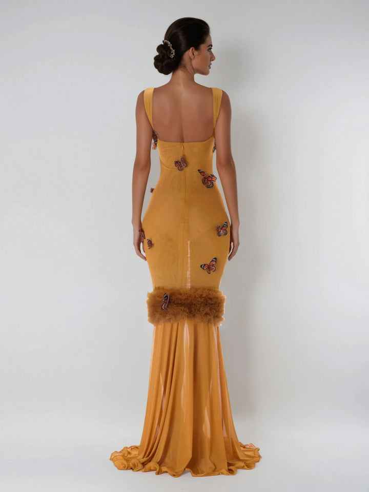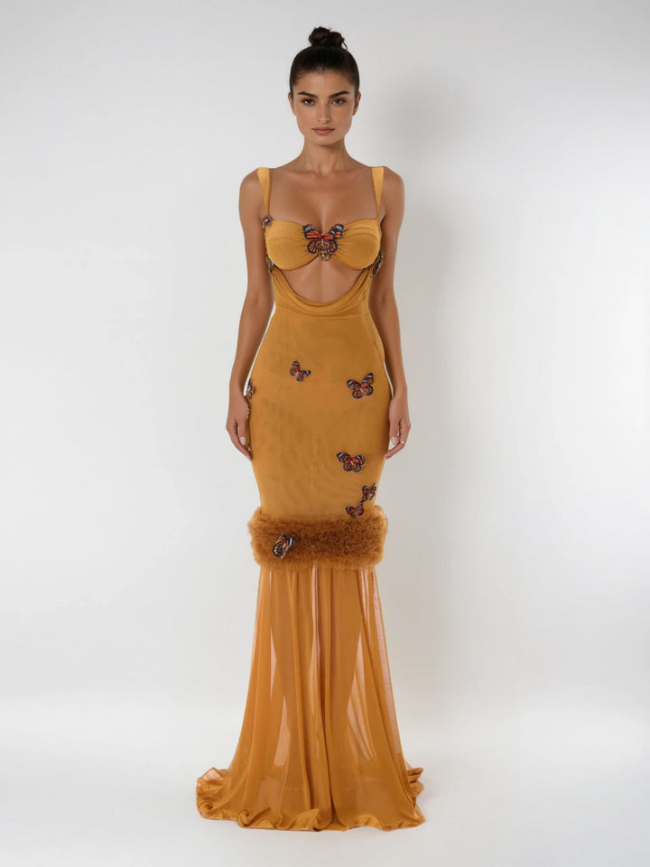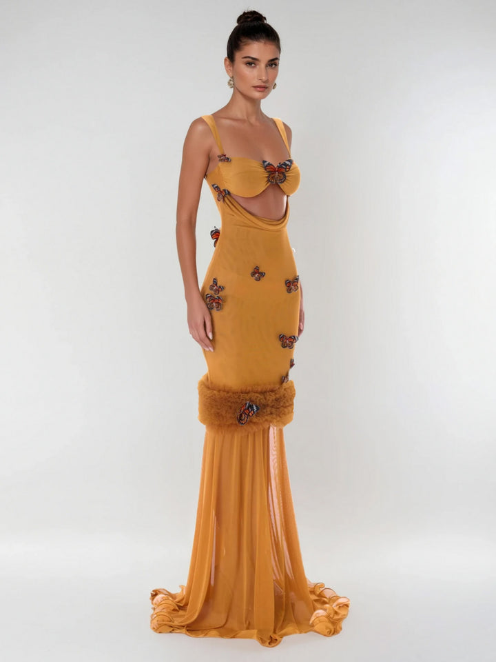 Uzgoth Cutout Butterfly Mesh Maxi Dress