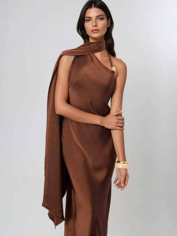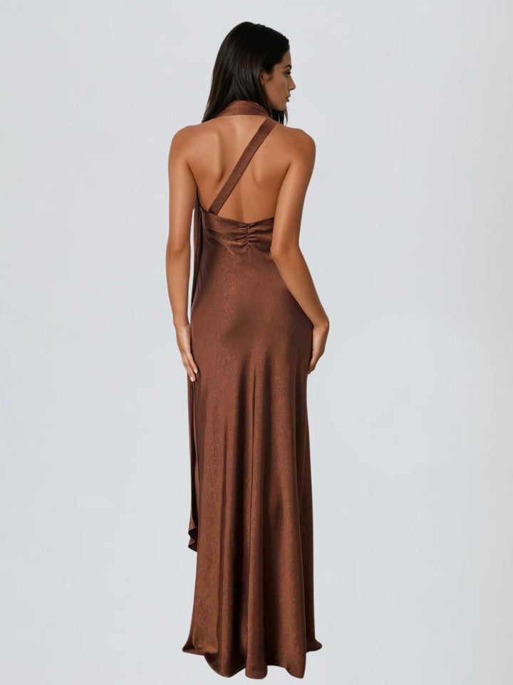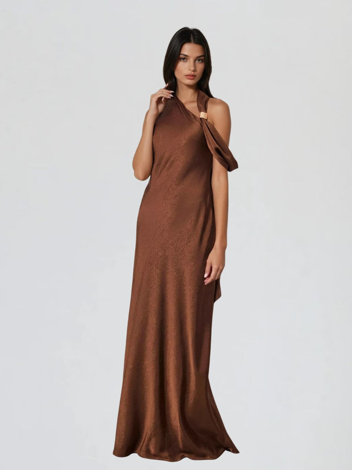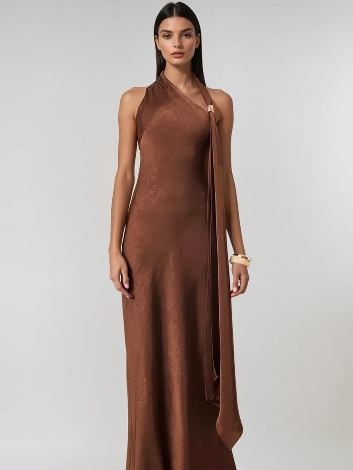 Elevate your style with the Vaeltric Halterneck Draped Maxi Dress. Featuring a flattering halterneck design and elegant draped fabric, this maxi dress effortlessly combines sophistication with comfort. Perfect for special occasions or a chic evening out, its flowing silhouette enhances your figure while providing graceful movement. Make a statement wherever you go with this timeless and versatile wardrobe essential.